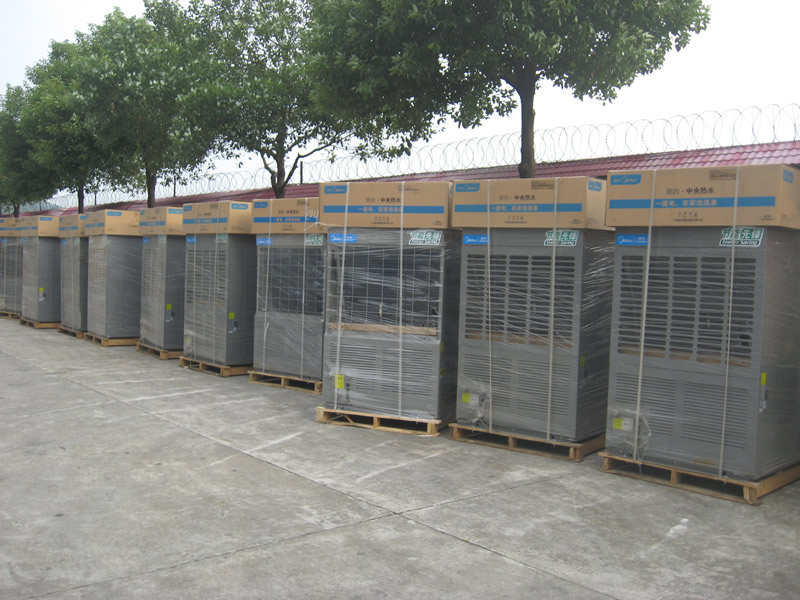 东莞绿扬鞋业有限公司10000人员工宿舍400吨水太阳能+空气能热泵热水工程项目所用到美的空气能热泵主机