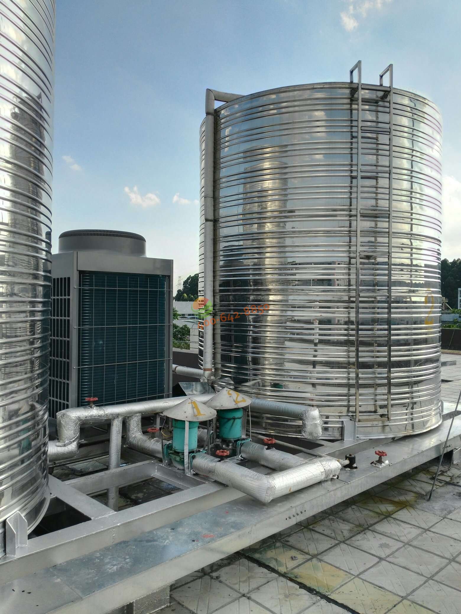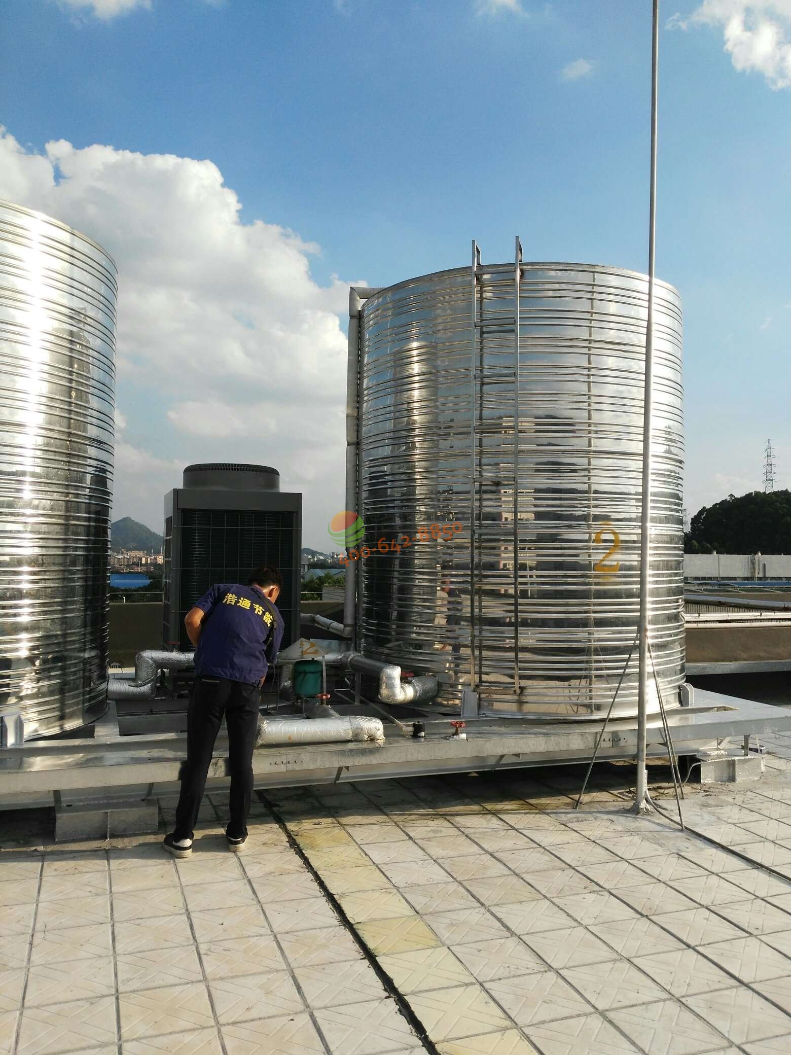 松下万宝美健生活电器(广州)有限公司——3台10匹30吨格力空气能热水工程30吨水箱安装图