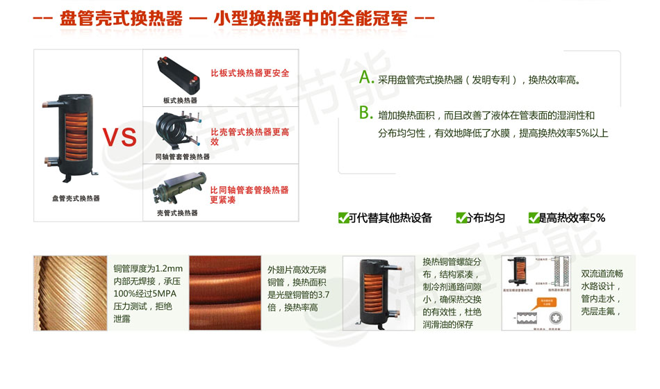 ● 壳管式和套管式换热器双结合,换热能力更优秀,能将比更高。